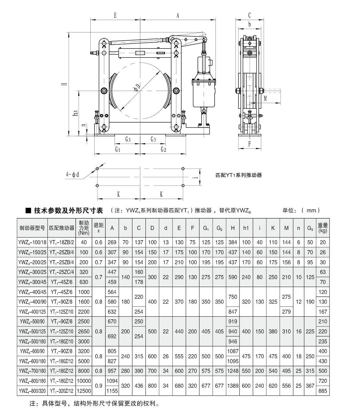 ● 產(chǎn)品型號(hào):YWZ4-100、YWZ4-150、YWZ4-200、YWZ4-300、YWZ4-400、YWZ4-500、YWZ4-600、YWZ4-700、YWZ4-800